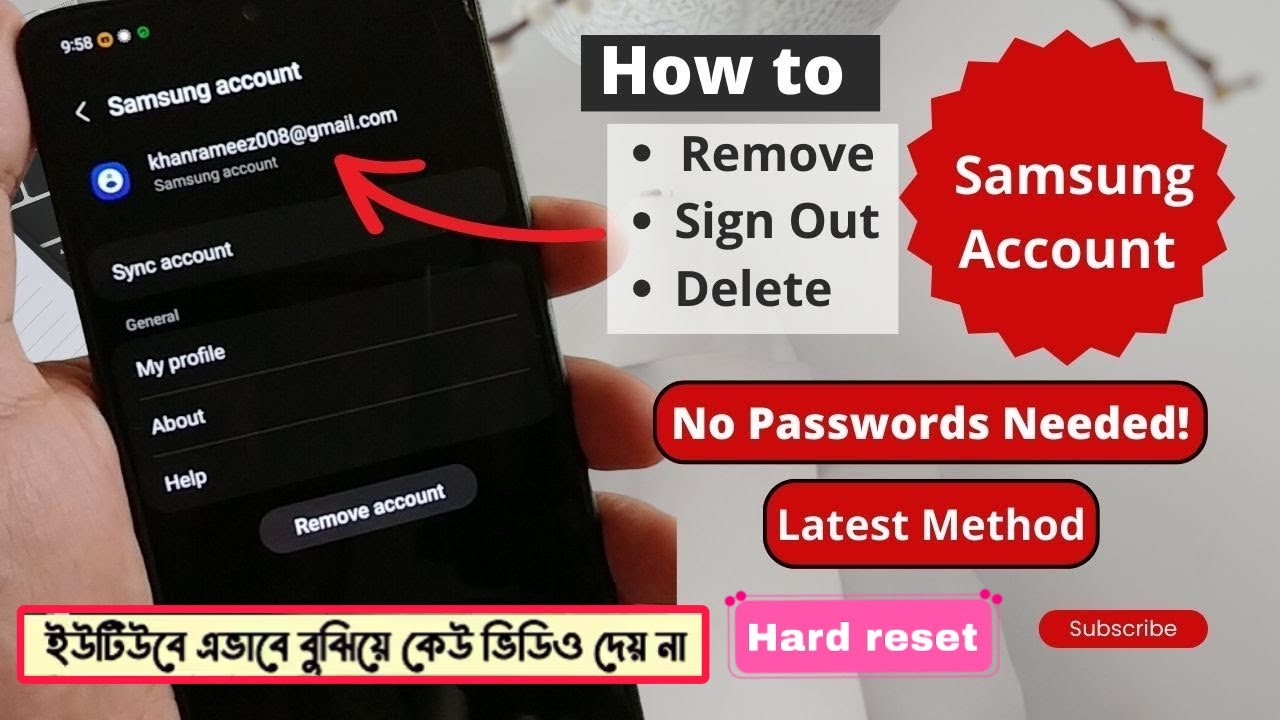 - Return to your Samsung account settings and select "Remove Account" from the top-right menu bar.